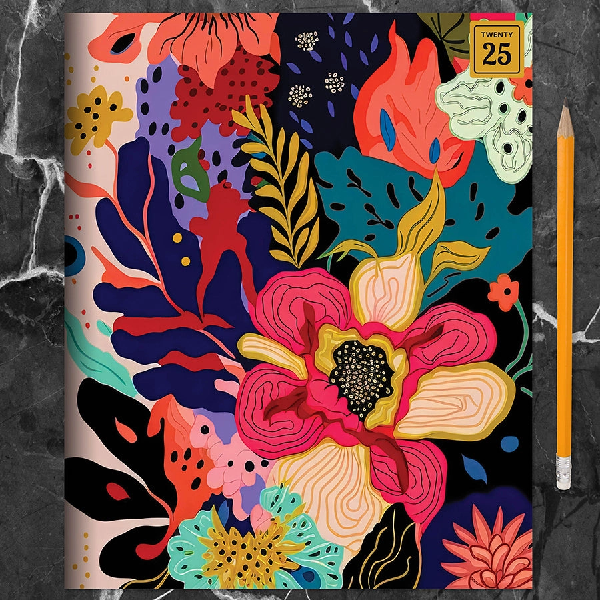 Keep calm and plan on with this 2025 6.5" (w) x 8" (h) monthly planner featuring a fresh take on a floral cover design. With 12 monthly views, January 2025 - December 2025, each spanning two pages, the extra-large grids provide ample room for all of your important information and additional monthly pages for events, appointments, and notes. Bonus pages include yearly views of 2025 and 2026 and lined notes. The premium cover is pliable, yet durable, and lays flat.