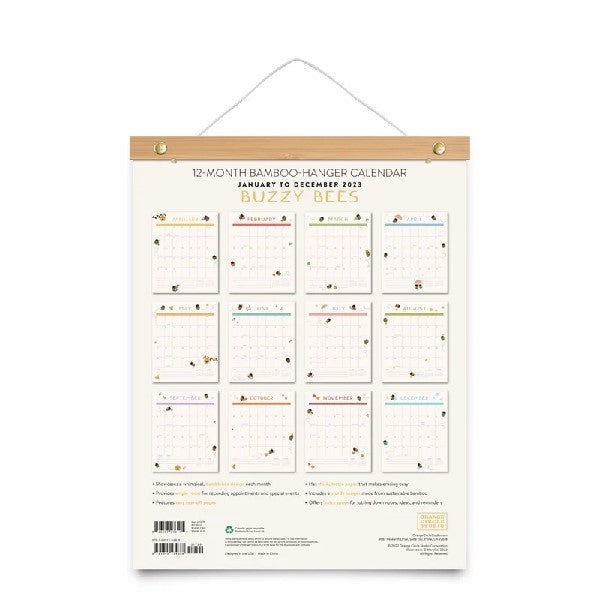 The Bamboo-Hanger Calendar from Studio Oh! featuring a sustainable bamboo hanger, offers a new and stylish spin on wall calendars. Each spacious monthly grid offers plenty of space for appointments, events, and special dates. Every month includes extra space for notes and a snapshot of the previous and following months. Whimsical designs will keep your spirits high as you keep track of your activities.