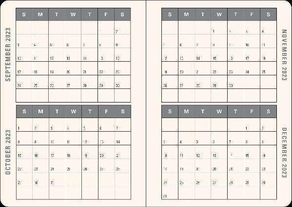 • Calendar/planner covers 16 months (September 2022 through December 2023).