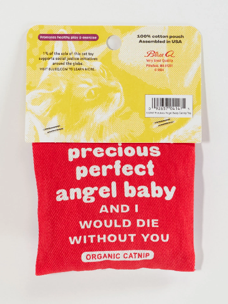 Blue Q Catnip Cat Toys are 100% cotton pouches filled with organic leaf-cut (fancy) catnip and screen printed with hilarious feline illustrations. It's a win-win gift! Humans get a kick out of the outsides. Cats get a hit of craziness from the insides.