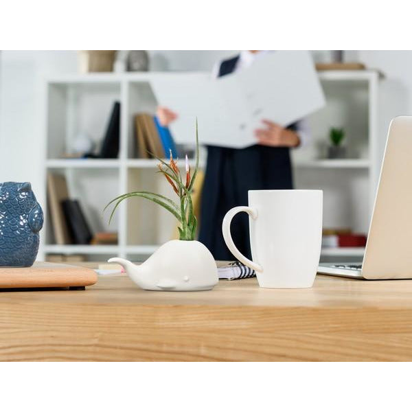 Treat your air plant to a fancy new home with this cute ceramic whale planter.  Fred's air plant holders are made of matte ceramic and are about 3" in diameter and 4" high.