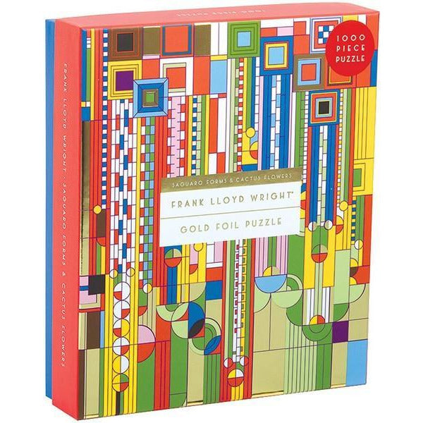 The Frank Lloyd Wright Saguaro Cactus and Forms 1000 Piece Foil Puzzle brings a new flavor to an iconic piece of art. The foil added to this famous image will guide you through this puzzle bringing joy and relaxation to amateur and pro puzzlers alike.