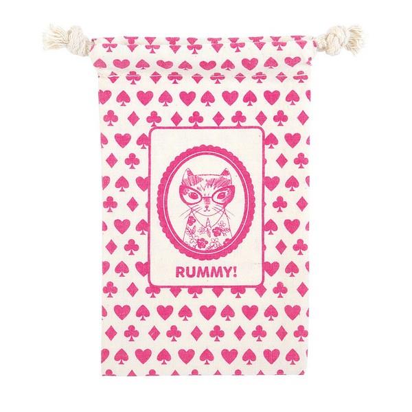 Play a round of the classic matching game with this set of Rummy, packaged in a drawstring travel pouch.