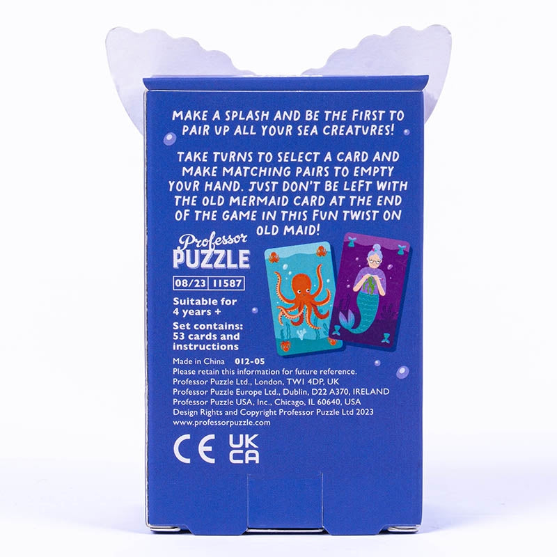 Make a splash with Old Mermaid, the under-the-sea version of the classic Old Maid card game! Take turns selecting cards and matching pairs of adorable sea creatures to empty your hand — but watch out! Whoever’s left holding the Old Mermaid card at the end of the game loses their fins!