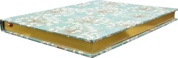 This elegant journal features a display of delicate white Allium Blossoms against a softly textured background. Inside, crisp journaling pages await pen or pencil, whether for personal reflection, sketching, or capturing favorite quotes and poems.