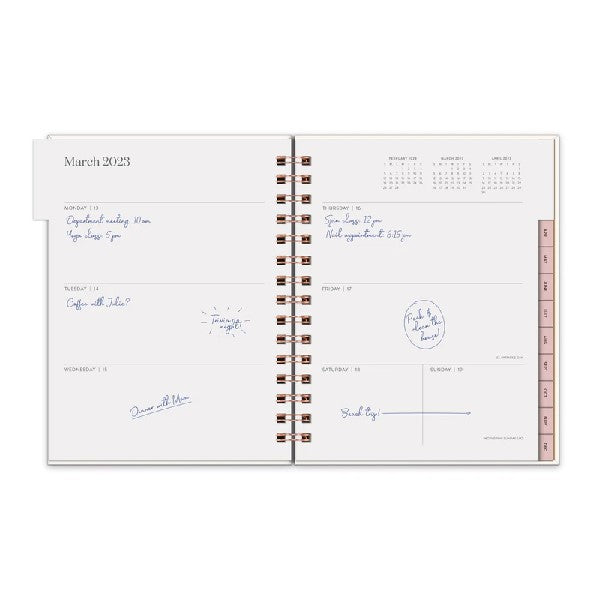 The Edie Tabbed Planner from Studio Oh! is a new twist on a classic. Spacious and minimalist monthly and weekly views help you keep appointments, activities, and events organized, and exposed monthly tabs add visual appeal and make finding the page you need easy. Keep track of your goals with the daily goal tracker and stay on budget with the monthly budget tracker. Covers include retro artwork and muted colors for an on-trend look.